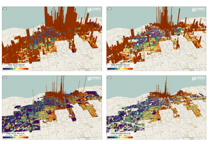This can also be seen by the work of Urbex Solutions showing the tax revenues generated by cities versus the cities appraised value of their lots.