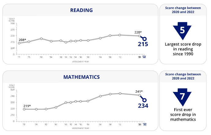 Covid-19 did a number on our reading and mathematics scores as reported by the The Nation's Report Card ( NAEP ), but even without Covid, the trend on education quality in just reading and mathematics has been effectively flat with an almost negligible change in improvement.